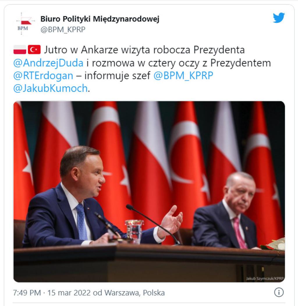 – Zarówno Polska, jak i Turcja robią wiele, aby wspierać Ukrainę w jej oporze przeciwko inwazji rosyjskiej – mówił przed wylotem Szef Biura Polityki Międzynarodowej KPRP Jakub Kumoch, podkreślając, że Turcja jest jednym z kluczowych sojuszników w regionie.