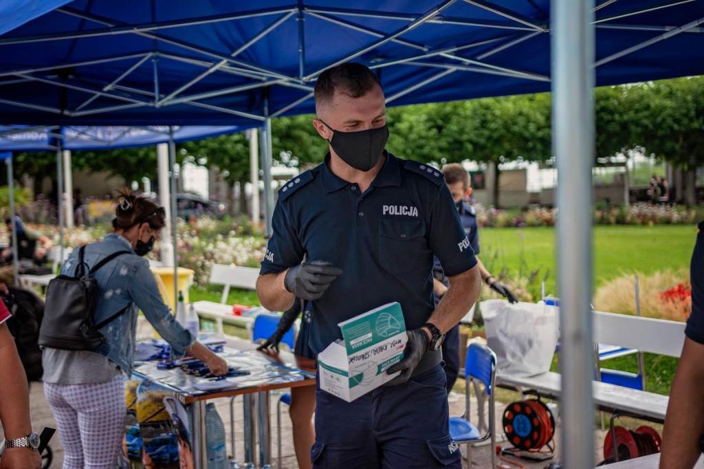 Patrolowali też teren wydarzenia i rozdawali maseczki wspólnie z funkcjonariuszami Oddziału Prewencji KWP w Gdańsku. Ci ostatni przygotowali też pokaz sprzętu służbowego, zwiedzający mogli zobaczyć wyposażenie funkcjonariuszy oraz np. potrzymać policyjną tarczę używaną w trakcie zabezpieczeń m.in. imprez masowych.