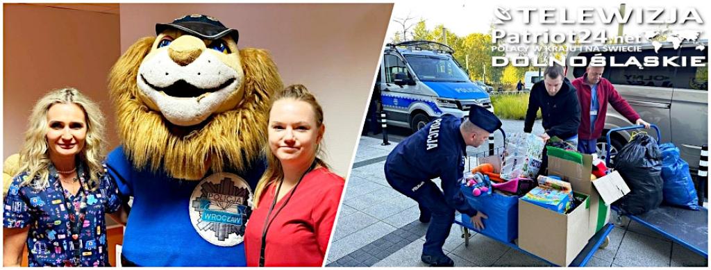 Funkcjonariusze z Komendy Wojewódzkiej Policji we Wrocławiu wraz z mundurowymi z Oddziału Prewencji Policji we Wrocławiu, Strażą Graniczną z Lubania Region IPAi pracownikami cywilnymi wrocławskiej komendy wspólnie zebrali zabawki, artykuły szkolne i biurowe, gry oraz klocki i przekazali je na oddziały dziecięce Dolnośląskiego Szpitala Specjalistycznego im. T. Marciniaka we Wrocławiu przy ul. Fieldorfa 2 – Centrum Medycyny Ratunkowej. Dary trafiły do świetlic Oddziału Anestezjologii i Intensywnej terapii Dziecięcej, Oddziału Chirurgii Dziecięcej oraz Oddziału Neurologii dziecięcej.