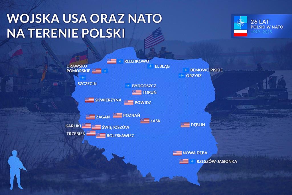 W ramach ciągłej, rotacyjnej oraz stałej obecności na terenie Polski stacjonuje w tej chwili – część na mocy umów dwustronnych Polska–USA, część jako wojska sojusznicze – w sumie ok. 10 tys. żołnierzy ze Stanów Zjednoczonych oraz innych krajów NATO.