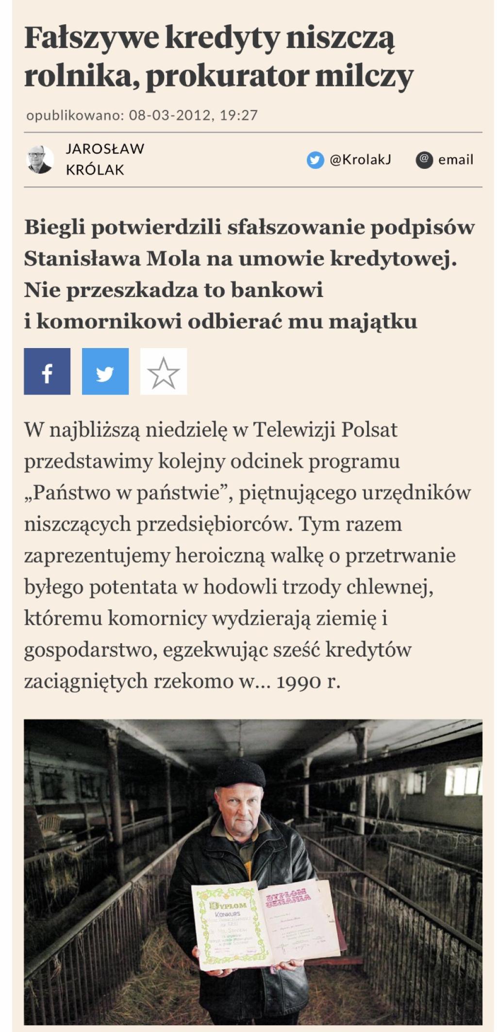 Koszmar Sanisława Mola jego rzekomych Pożyczek w Banku Spółdzielczym w Szczańcu nagłośnił w 2012 roku Polsat w programie "Państwo w Państwie":