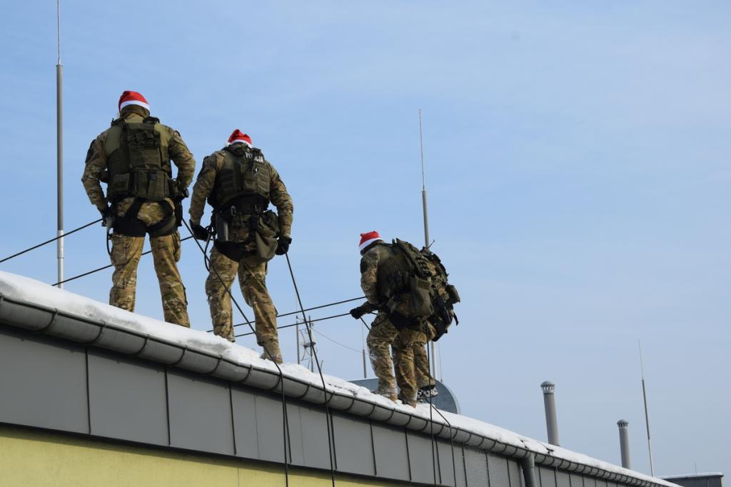 Policyjni „komandosi” mają za sobą wiele akcji, ale ta dzisiejsza była szczególna. Rzeszowscy kontrterroryści, jako pomocnicy Mikołaja, odwiedzili Kliniczny Szpital Wojewódzki Nr 2 w Rzeszowie. Zjeżdżali z dachu na linach, żeby przekazać dzieciom mikołajkowe prezenty. Pomocnikiem Mikołaja był także policyjny robot pirotechniczny, który rozdawał prezenty po szpitalnych salach.