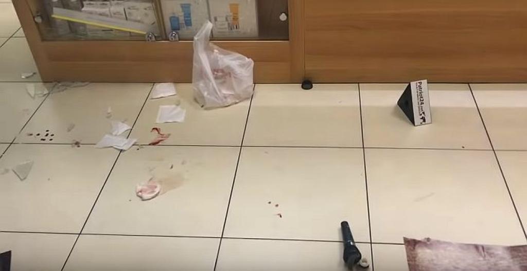 Dariusz B., próbując się wyrwać i uciec poprzez drzwi apteki na zewnątrz, wytrącił naszemu redaktorowi sprzęt nagrywający. A próbując się wyrwać, rozbił szkaną witrynę apteki i skaleczył sobie dłoń.