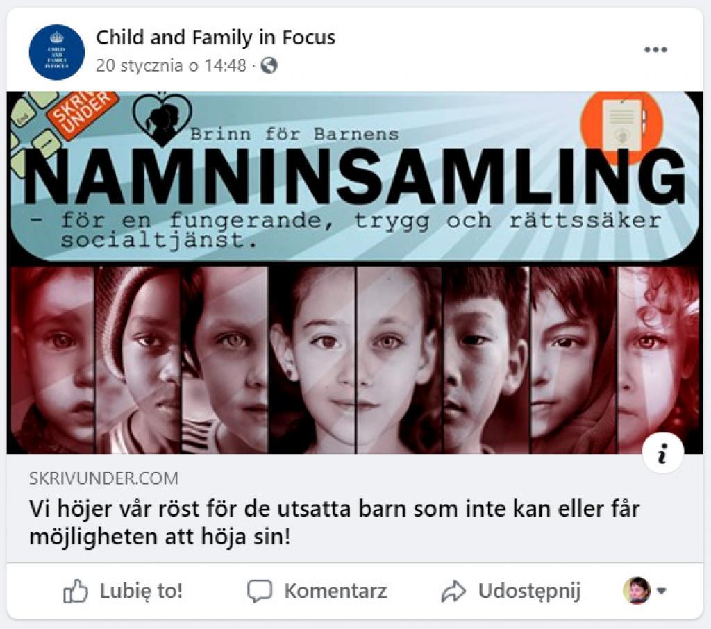 Our editorial office fully supports the postulate of stopping the breaking up of natural families, mainly foreigners, that is also Poles, in Sweden.